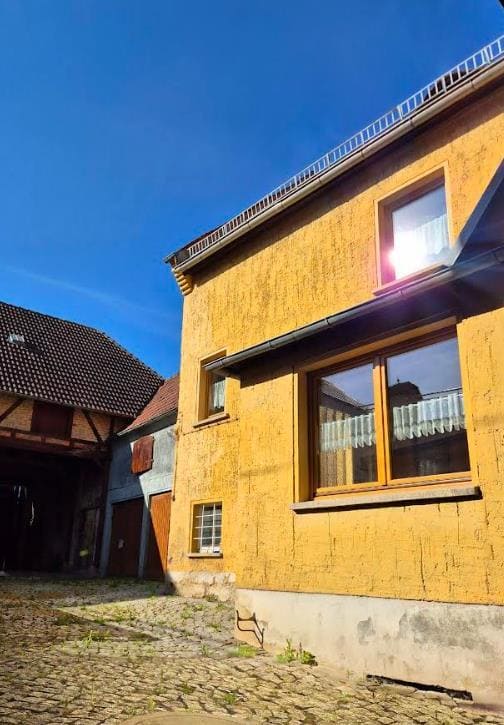 Dieser charmante Drei-Seiten-Hof in Jena-Winzerla bietet eine einmalige Gelegenheit für all jene, die sich ihren ganz persönlichen Wohntraum erfüllen möchten. Das historische Anwesen mit seinem einzigartigen Charakter wartet darauf, mit neuem Leben gefüllt zu werden. Wer Freude am Gestalten hat, kann hier ein wahres Schmuckstück entstehen lassen – ob als großzügiges Familienanwesen, Mehrgenerationenhaus oder als nachhaltiges Wohn- und Arbeitsprojekt.