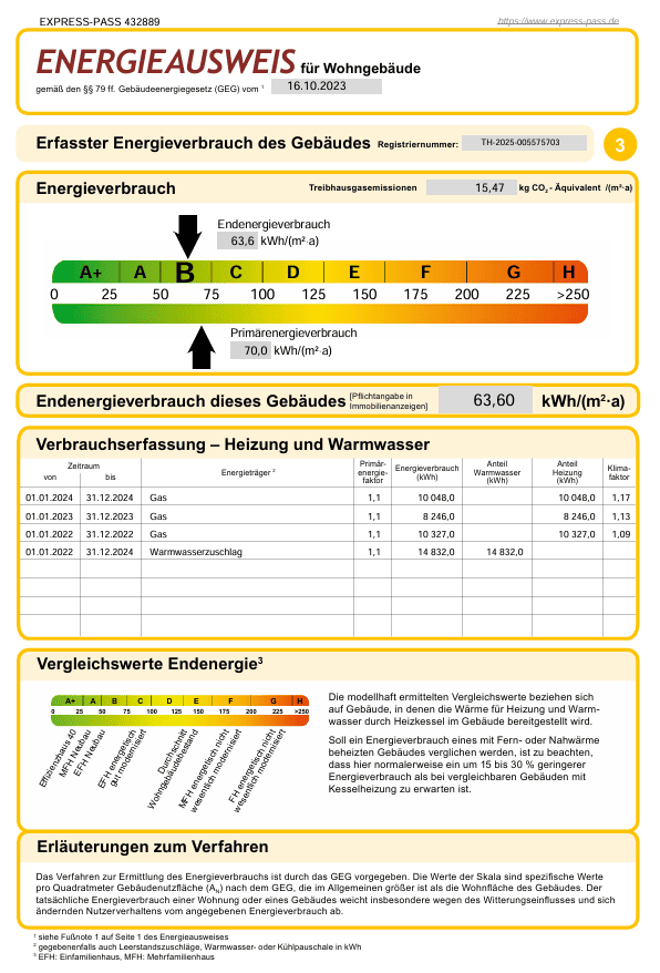 | Endenergiebedarf dieses Gebäudes | 63,6 |